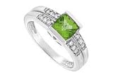 Peridot and Diamond Ring : 14K White Gold - 1.50 CT TGW Size 12.5A square grassy green peridot is set in the center & is enlivened by two rows of round diamonds on both sides. Made in 14K white gold this ring has a total gem weight (TGW) of 1.50 ct...Please note: Normal shipping time is for the average ring size (Women - size 6, Men - size 10). If you order a different size, the ring will be custom made to that size and will take longer for shipping.......Please note: Normal shipping time is for the average ring size (Women - size 6, Men - size 10). If you order a different size, the ring will be custom made to that size and will take longer for shipping...