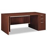 | ✚✚✚ Attune Right Pedestal Desk, Frosted Mod Panel, 72w x 36d x 29-1/2h, Shaker CY - 11887RGFF Contemporary designs with enhanced storage solutions and smart technology. Easy-care laminate with vertically-matched woodgrain is abrasion- and stain-resistant. Drawers operate on high-quality steel ball bearing suspensions; file drawer extends fully, box drawers extend three-quarters. Integrated wire management--grommets ensure a clutter-free work space. Laminate modesty panel is attached 2" below desk so open modesty panel permitting easy access to power/data wall outlets. Color: Shaker Cherry; Pedestal Count: 1; Top Shape: Rectangular.
